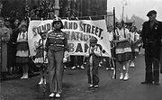 More detail »Coronation Carnival Parade in Lauder Street looking up to Avenue Road. The Blind School is just visible in the background and the back of the Regal cinema beyond. Patriotic ladies are encouraging people to buy British produce. He must be worn out doing a handstand for that length of time. 12th May 1937.