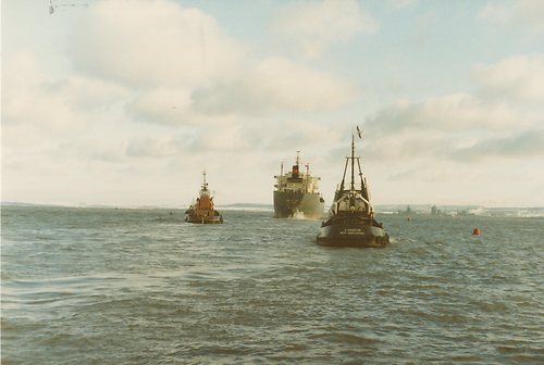 Donated by Hartlepool Museum ServiceMV Nosira Lin leaving Hartlepool assisted by the Tug Hart.