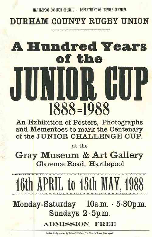 To mark the Centenary of the Junior Cup, Durham County and Hartlepool BC staged an exhibition the mark the achievement. Items from the many clubs involved over the years and Posters from the Robert Wood Collection all added to an excellent celebration.